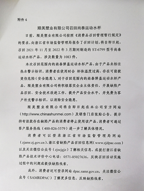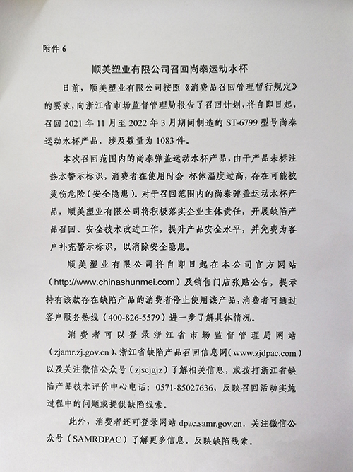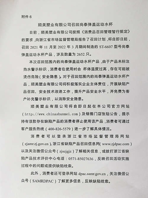Publicity of environmental impact assessment of 6000 tons of plastic products and 6 million thermos cups